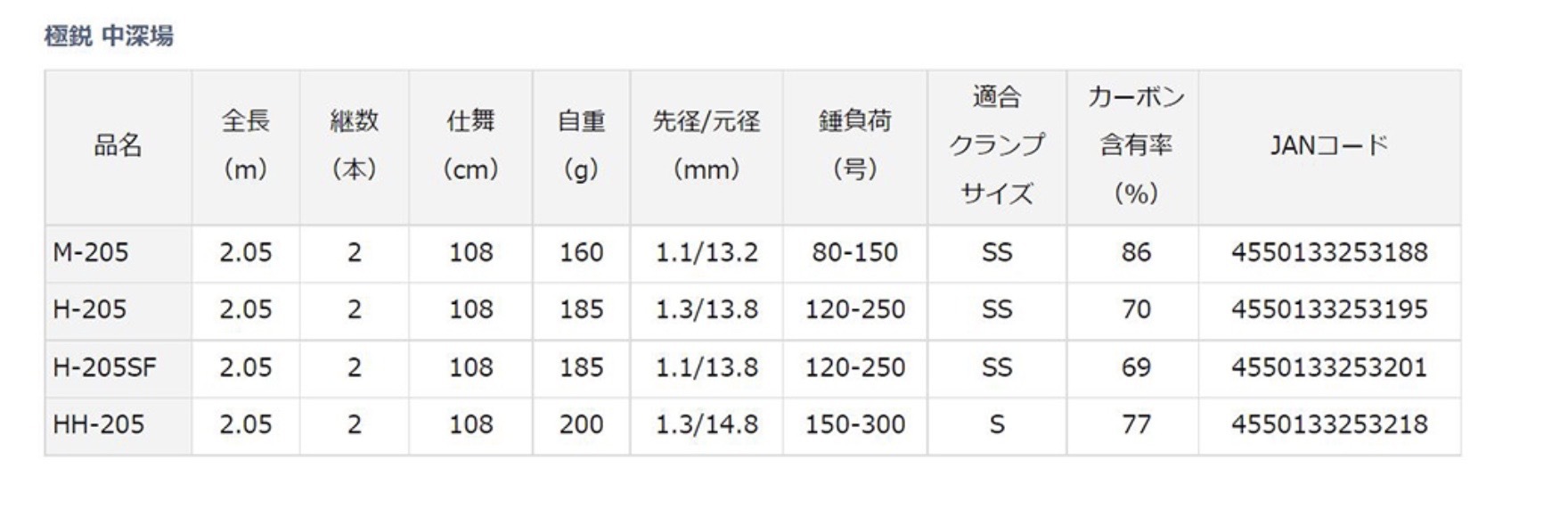 *H-205 185g,輕型中深場通用桿,具有出色靈敏度和可操作性。
