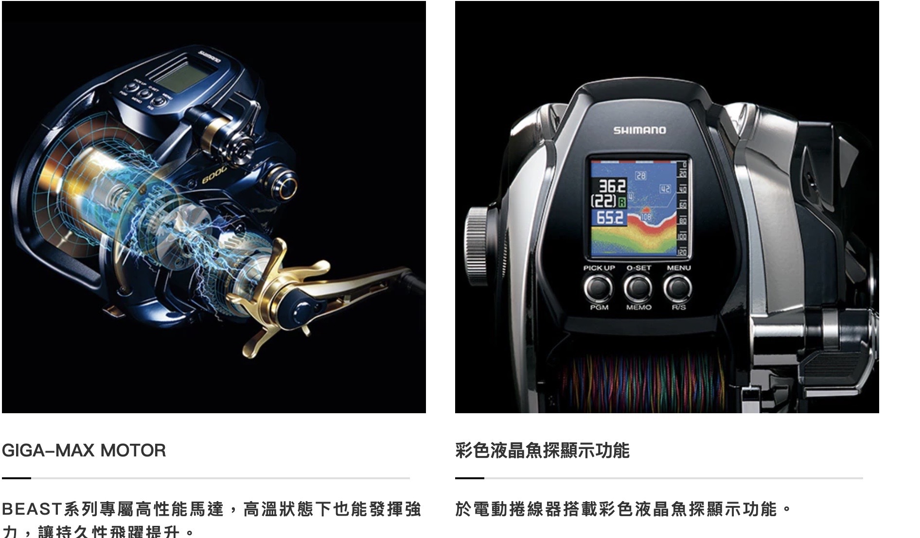 搭載 Shimano 的 GIGA-MAX MOTOR,這款馬達專為深場釣魚而設計,能夠提供穩定且強勁的捲線動力,特別適合用於釣捕大型魚類。該馬達設計耐高溫,持續運轉也不易過熱,讓釣魚者能長時間釣魚而不會擔心馬達過熱問題。